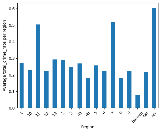 Here, we can see the average crime rate seem to be higher in three (3) regions, namely NCR, Region 7 (Central Visayas), and Region 11 (Davao Region). There seems to be some relation on the location of a region with crime, which can be due to employment and poverty rates associated to the said locations.