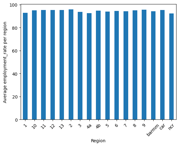 Moving on to employment rates, all regions do not differ much from each other. Taking the bottom five (5) regions in employment rate, we get NCR, region 4A, region 1, region 3, and region 5.